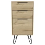 Valerian Light Dresser. This sleek and stylish dresser is perfect for small spaces, as it offers ample storage in its three drawers (6,4”H X 12,9”H X 16,2”W); you can also use the top surface (17,71”W x 13,70”D) to expose your favorite decor. The Valerian Light Dresser comes with stylish hairpin legs for a modern look. Keep your bedroom organized and tidy with this practical and chic piece of furniture. Designed with elegant light oak manufactured wood finish.