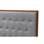 Traditional king size headboard Constructed from rubberwood Button-tufted design Padded with foam and upholstered in fabric Rectangular outline Upper back features 6 predrilled holes 2.5″ apart for 5 different height adjustment options